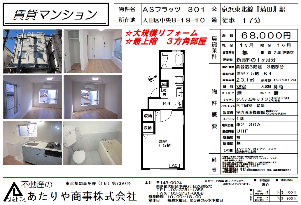 賃料:68.000円